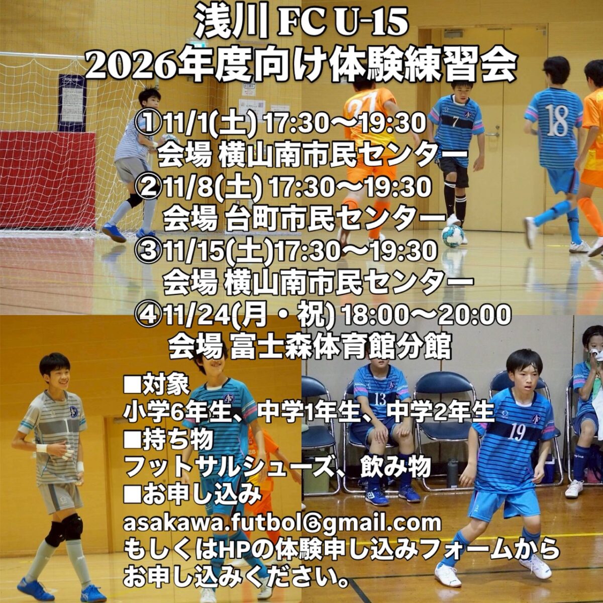 浅川フットサルクラブのU-15クラスでは2026年度に向け現小学6年生~中学2年生の選手を募集しています。